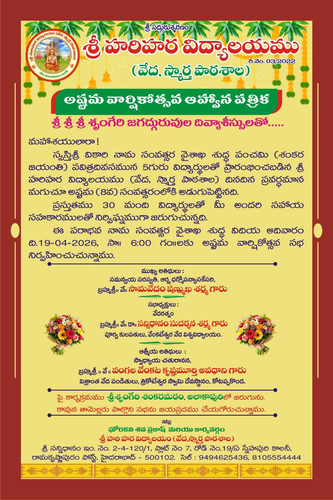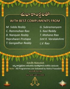 Additional Contact: Smt. Manjula Vunnava – 9892217682