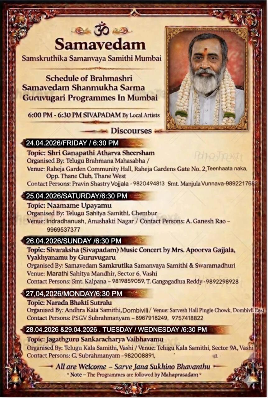 Under the Aegis of: Samavedam Samkrutika Samanvaya Samithi & Swaramadhuri